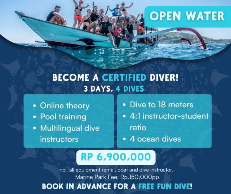 Pre-book your Open Water Diver Course on Gili Trawangan now, get online theory access straight away, and enjoy an exclusive discount or a free fun dive.